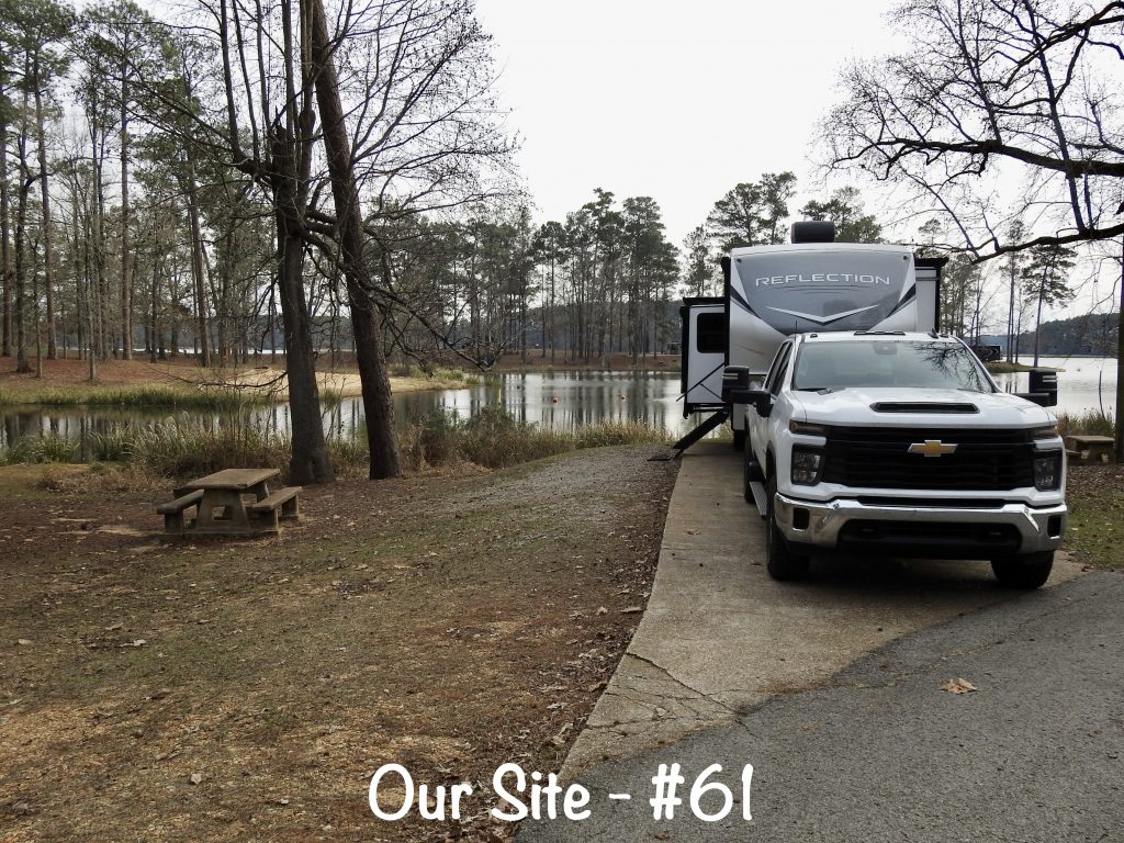 Jackson County Park & Marina is located on the north end of Guntersville Lake in Scottsboro, Alabama, with easy access to everything in town. You can also get to Huntsville (40 minutes) and Guntersville (20 minutes), both of which are worth visiting. Set up mainly for water activities, this park is great for summer family fun. Amenities include a walking trail, playground, pavilions, a fishing dock, several boat docks, a boat ramp, a fishing pier, a marina, boat fuel and propane sales, and an onsite BBQ joint (may be seasonal). Lodging options include nine cabins and the campground, which has around 125 graveled sites, only 26 of which are available short-term. Those you can rent are back-in, full hookup with 50/30-amp posts. Our site backed right up to the water, was level and easy to get into, and had plenty of space. The bathhouse was old, but reasonably clean, and there is a laundry onsite, although neither of us went in. Cell signals were strong and there were a handful of over-the-air tv channels that came through. There was a cable line on the post, but we did not check it. Since our visit was in winter, the park almost looked like fancy trailer storage…lots of rigs but very few people. In fact, we only saw a handful of other people in the entire place. It was very peaceful, but that would definitely not be the case during the warmer months. We would stay again in the off season, though. For this visit in January 2026 we paid a little over $42 a night for 3 nights, which included a cancellation fee for another originally planned night.