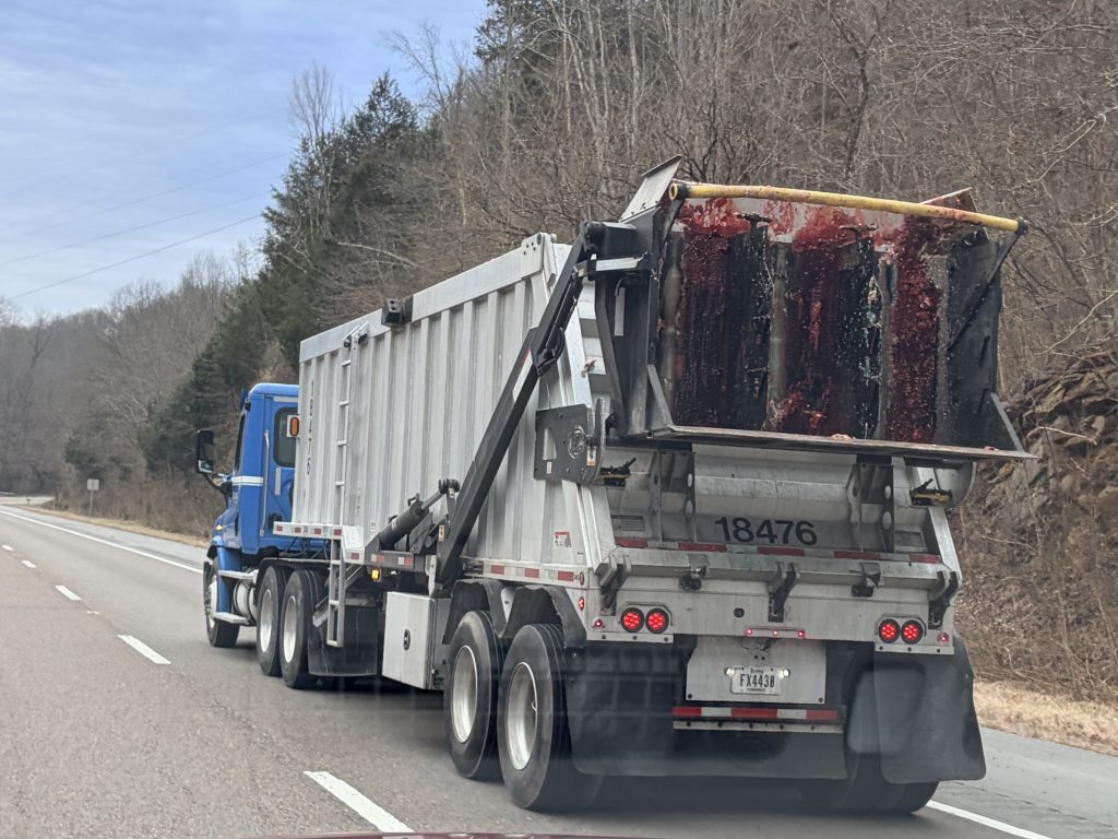 WARNING…GROSS: In mid-January I was driving back from Morristown and saw a truck in front of me. Clearly something industrial, I was trying to figure out what the rear section was used for. As I got closer, I was even more unsure. Doesn’t that appear to be blood and yuck? Why is it just out in the open on the back of the truck? Is this evidence of Soylent Green? Does anyone actually know what this is used for??