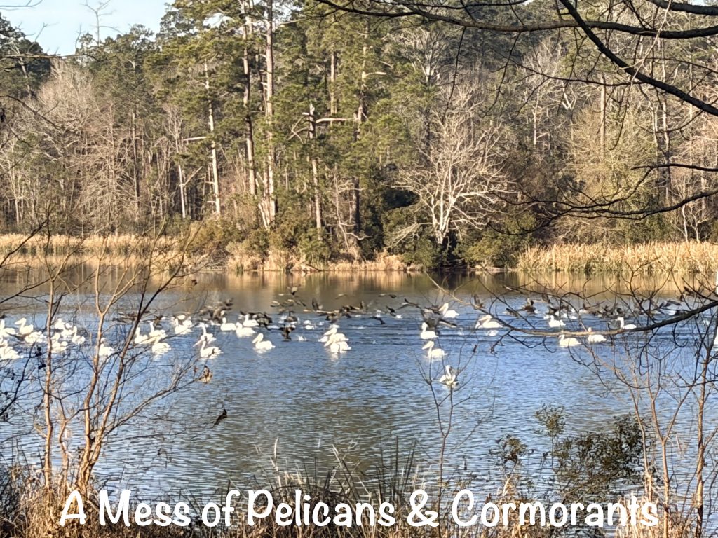 Since we didn’t have to hit the road very early on Monday, February 2, MW ran down to Golf Carts & Power Sports to get propane and filled up Big Jake on the way back. While he was gone, I happened to glance out the window and saw a huge flock of birds, both white pelicans and cormorants, swimming past the campground. My camera was in the truck with MW, but I ran out with my iPhone to snap a shot of a small part of the whole flock. Amazing! We finally hit the road about 10AM, taking US-165 back to Glenmora, then LA-113 to LA-112 to DeRidder. There we stopped for a few groceries at the Dollar General and had lunch at The Stadium Sports Grill. After that it was US-190 into Texas and over to Jasper, where we turned north for the last leg up to Rayburn Park near Broaddus. After setting up and relaxing a bit, we had a beautiful sunset over the lake.