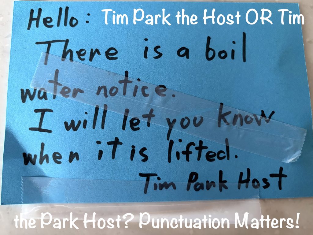 As if to make up for the bad weather, Wednesday dawned spectacularly gorgeous! After a slow start, we headed over to Lufkin, Texas, to take care of a couple of errands and have a bite at the Rusty Axe Brewing Company. (Wow…delicious food. MW had the East Texas “Not-Lobster” Roll – basically a crawfish po boy, and I had their winter squash soup and a goat cheese side salad. Yum!!) Afterwards we looked around town a little bit before heading back to Priscilla. There we were greeted by a note on the door. We aren’t sure what happened, but the water was a bit discolored and there was now a boil notice. Ugh!