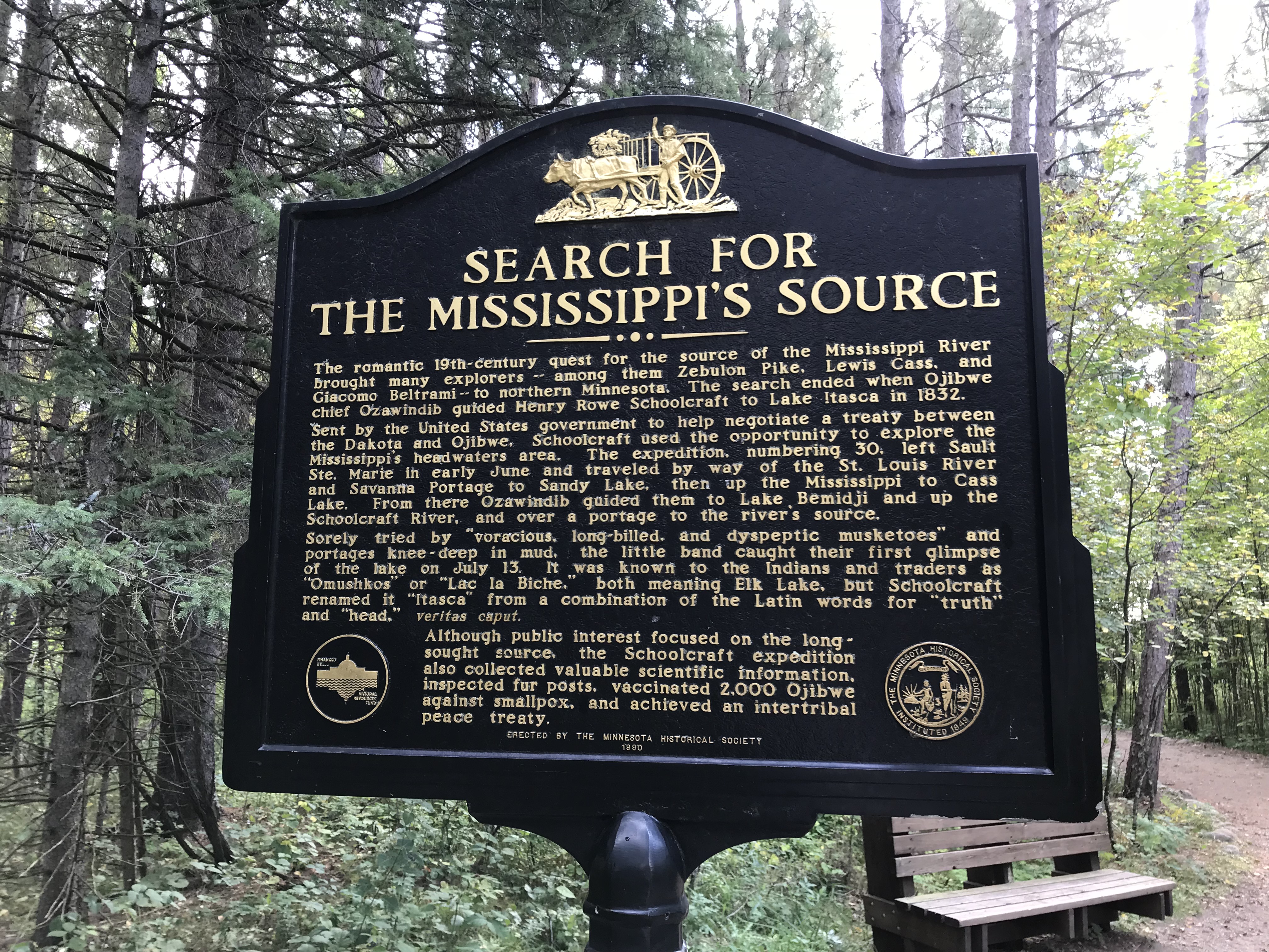 We continued our trek north to find the beginning at Itasca State Park. Itasca Lake is the source of the Mighty Mississippi. It is amazing to see the small creek leaving the lake over a natural rock dam, heading out to become Big Muddy. The Ojibwa Indians led the first white man to the lake in 1832, and I find it amazing to think that trillions of dollars in annual revenue in the U.S. start right there at that small stream. The water we saw flowing out of the lake will travel 2,350 miles and reach the Gulf of