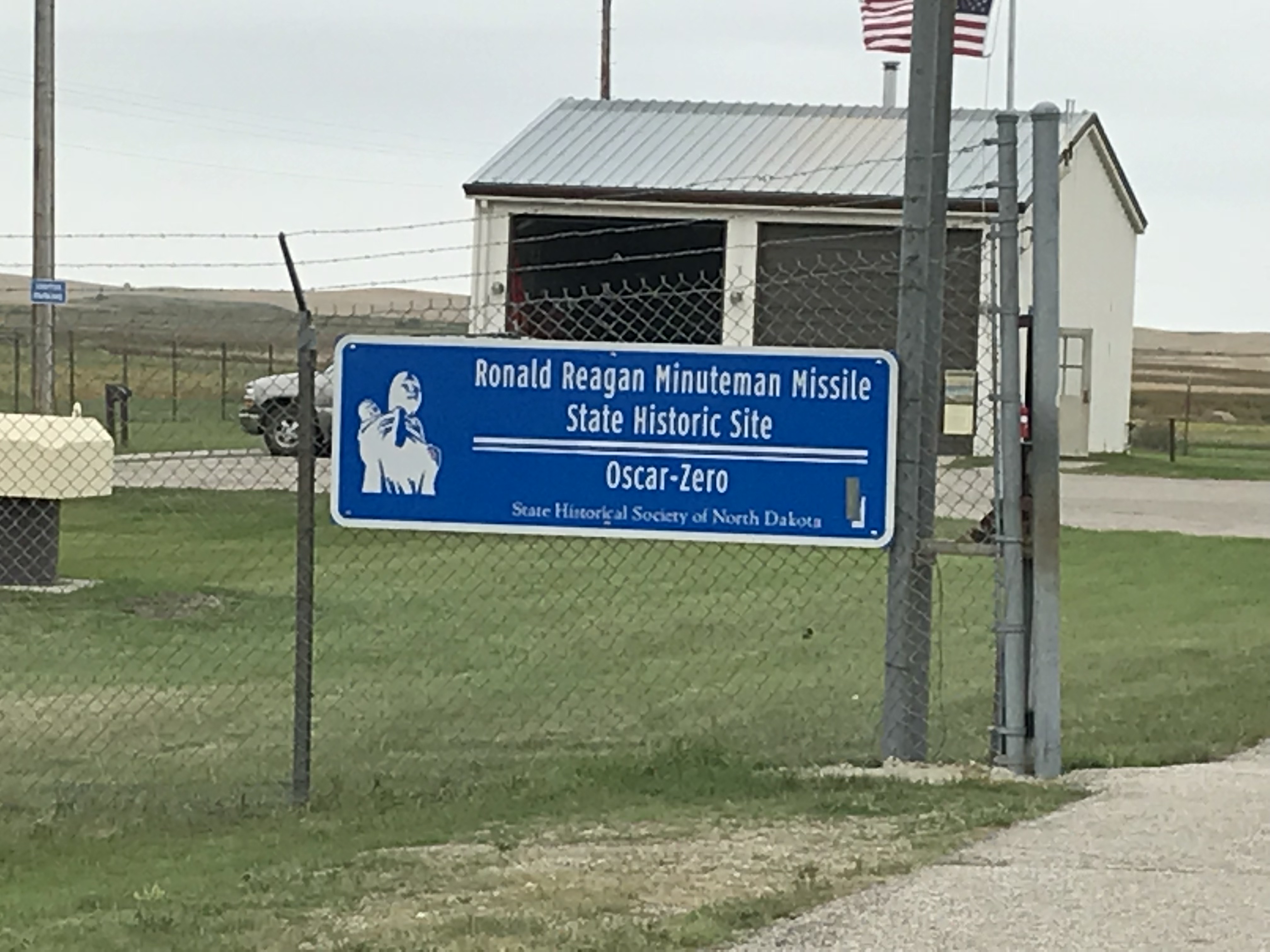 This morning I was slow getting up. The wind was so strong last night that Penelope was rocking! We went to sleep with the windows and both vents open. The first time I woke up, the blinds in the kitchen whipping around like crazy, so had to close those windows. Later I got up to go to the bathroom and the side window blew up and pulled the closing rod out and threw it against the side of the trailer. Since I didn’t want scratches, I had to get dressed and go out to put the rod back in and close that window. Then in the wee hours the vent over the bed was rattling like crazy and had to be closed. Of course, MW slept through all of it. (Man I wish I could still sleep like that!) Just after I was finally good and asleep, it was time to get up and hit the road. On mornings like this, I really wish I had learned to like coffee!!! We headed out, and I drove for the first leg. Towing is so smooth that I don’t really notice Penelope back there except that she is blocking my rear view mirror, but I do like to practice occasionally in case I ever have to do it on my own. We crossed into North Dakota and our route took us by the KVLY TV tower near Clifford. At least we think that is the tower we were looking at. It is supposed to be the tallest structure in the U.S., but who can really tell when you are looking at a TV tower? We continued over to Cooperstown to take a look at the Reagan Minuteman Missile State Historical Site Oscar-Zero. (We used the GPS, which lead us to a point in the middle of nowhere on a dirt road. Thankfully, there was a place large enough to turnaround!) Oscar-Zero is the control center for several of the decommissioned missile silos in the area, and the cool thing is that they let you go down into the bunker where the controls were manned. I mean, this is where the guys sat with the KEYS! THE KEYS!! The ones that must be turned at the same time with a code to launch a nuclear missile!!! The responsibility must have felt crushing at times for these guys! This facility is surrounded by farmland, as are most of the missile sites. As you are driving along, you will just see a fenced off area in a field and a government sign. I wonder what it was like for the local farmers during the Cold War sitting on top of nuclear missiles that were potential targets for Russia?