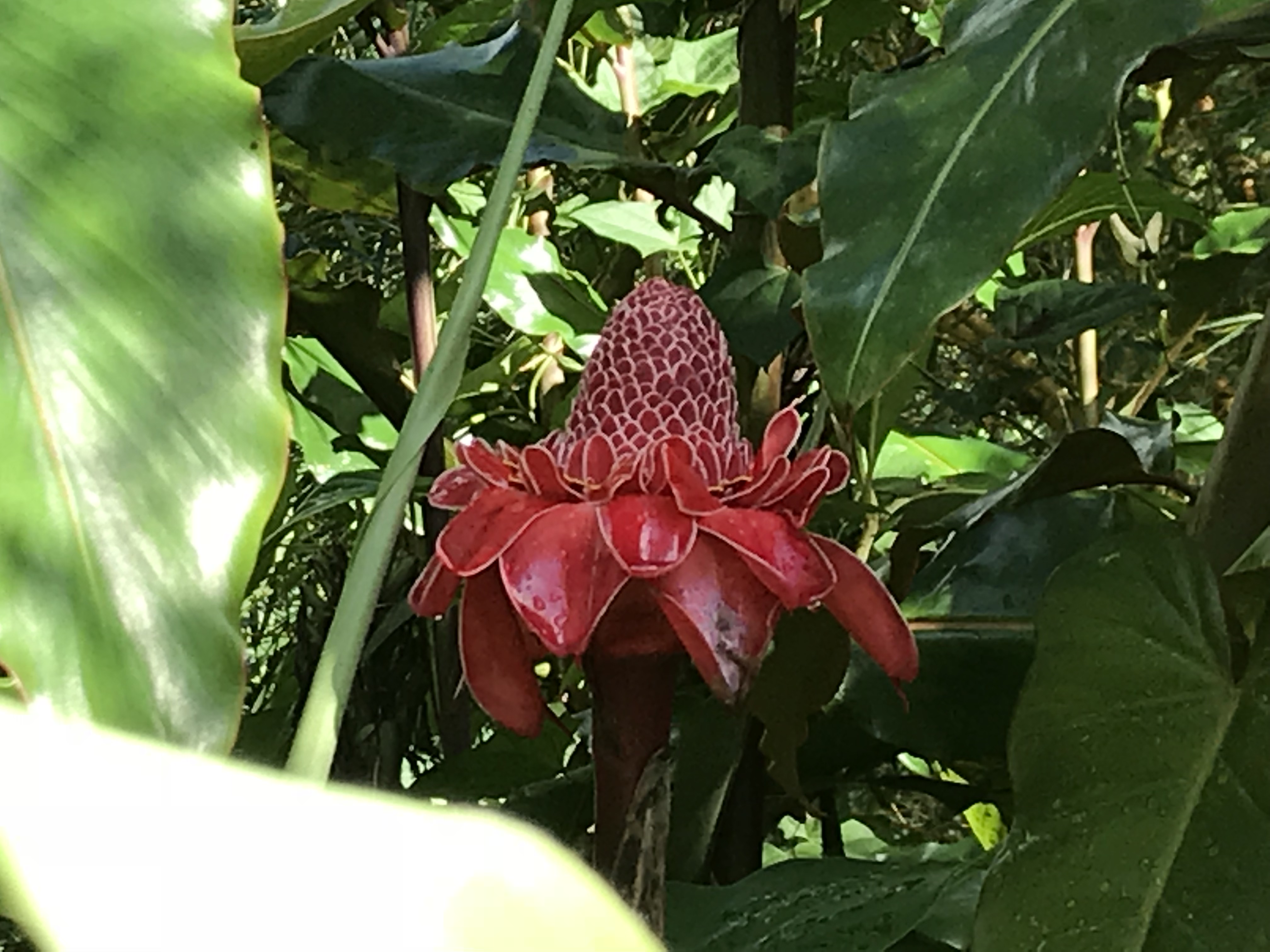 Since everyone on the ship would be heading south to the volcano, we decided our first day would be north. Hawaii is a pretty large island, and we’ve got two days to explore it all. Our first stop was Akaka Falls. Just beautiful! You can see the falls from the parking lot, but it’s worth the walk down for a closer look. The foliage is incredible with orchids, bananas, and a huge variety of flowers everywhere. There are a couple of secondary falls, the best of which I could not get a picture of because of the lack of light in the lush undergrowth. It was beautiful, though. A flat wall of rock with water sheeting down it into a beautiful pool in the shade, surrounded by ferns and orchids. It was off of the path, so we couldn’t get