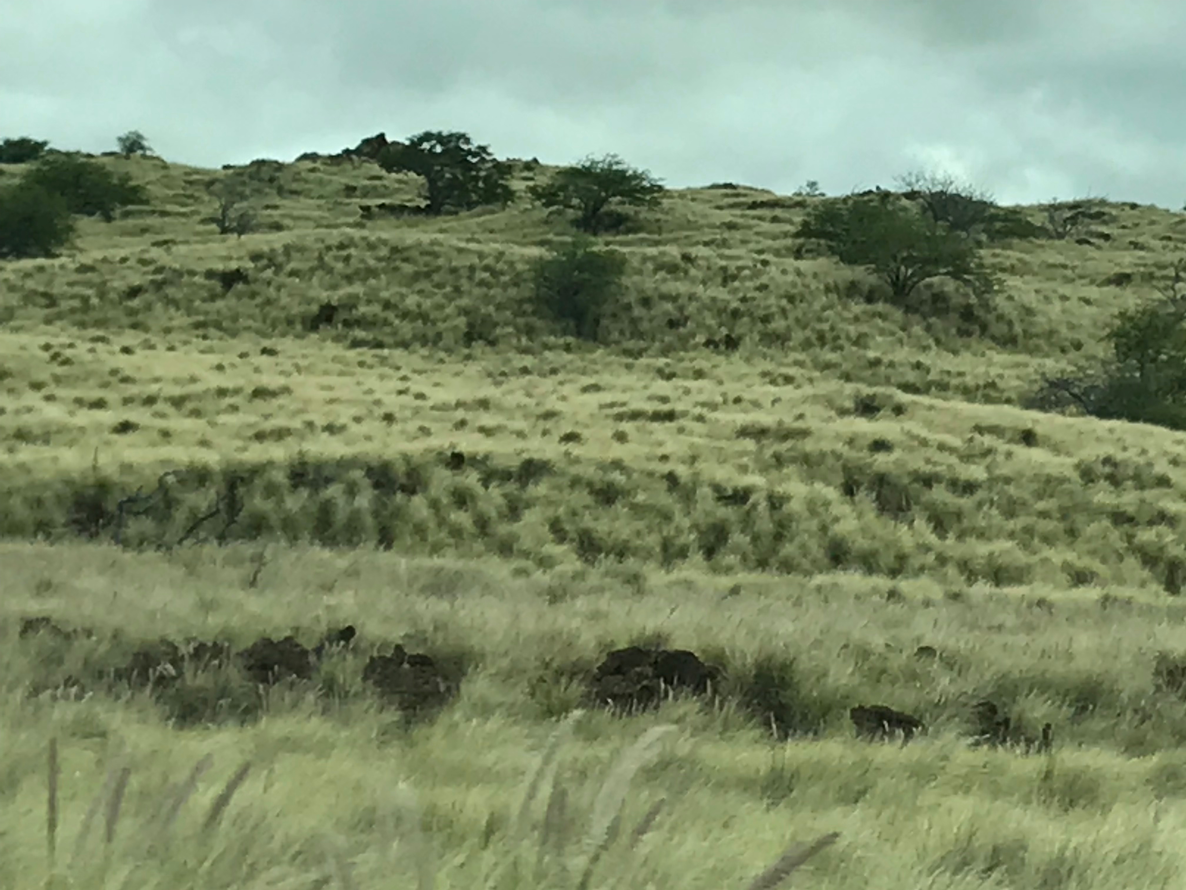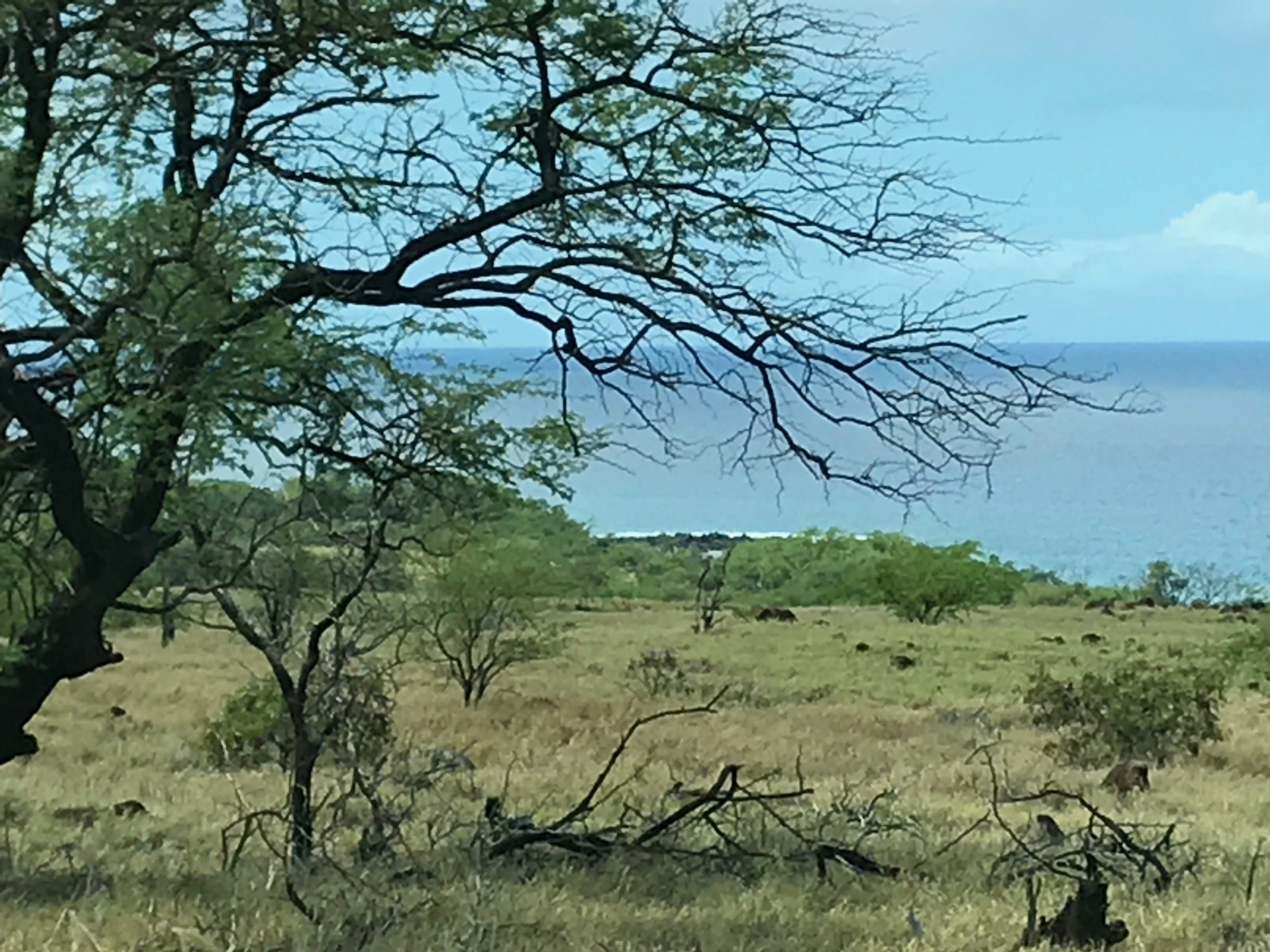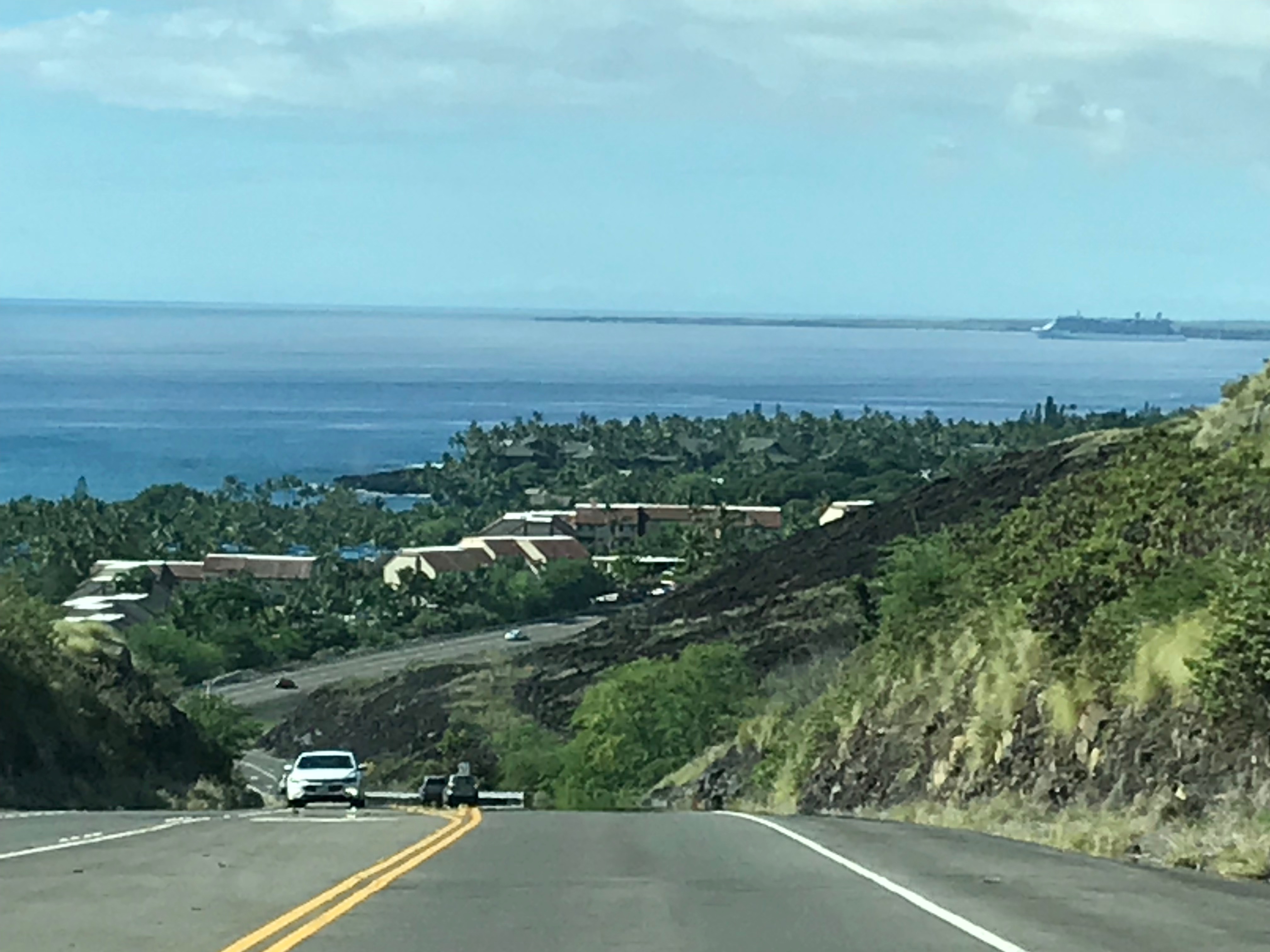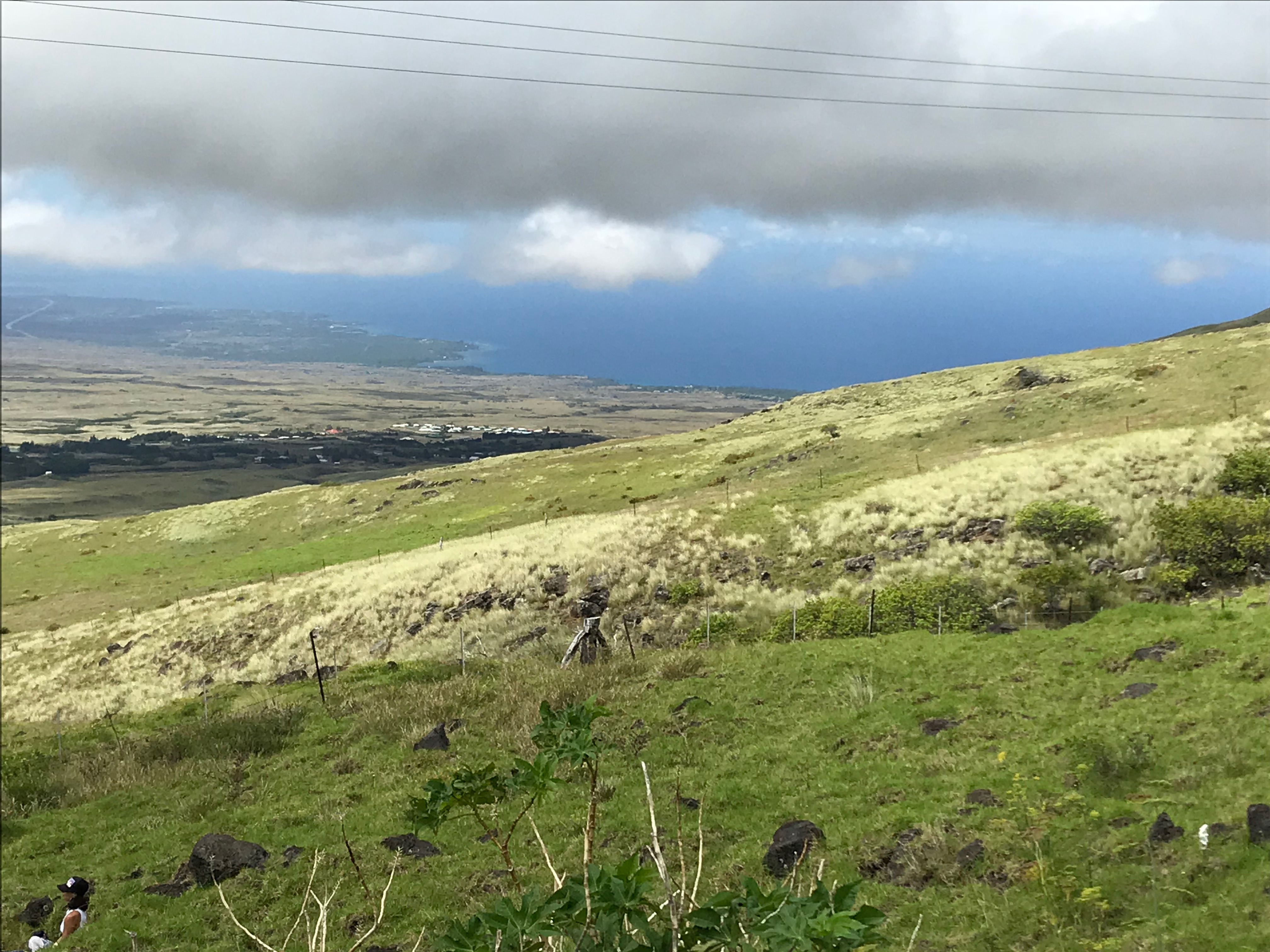 Mauna Loa could be seen off in the distance, too. It is interesting looking because, while it is one of the three active volcanoes on the island, it erupts through various blow holes that look like pimples all over the mountain. It was hot as hell when we left the port, but what a difference when we pulled into the park at Mauna Kea…73 degrees, breezy, and NO humidity! The road takes you up above 6,000 feet, which accounts for the drastic temperature change. That was the first time we were really comfortable since arriving on the island. If I had to live in Hawaii, that parking lot would be the spot! I don’t think I noted yesterday that there is a military training area near Mauna Kea. Some smart person checked the weather when they chose that location! You can actually drive to the top of Mauna Kea, but we didn’t have time, thoughI would make that a must-do if you plan to go and it’s a clear day.