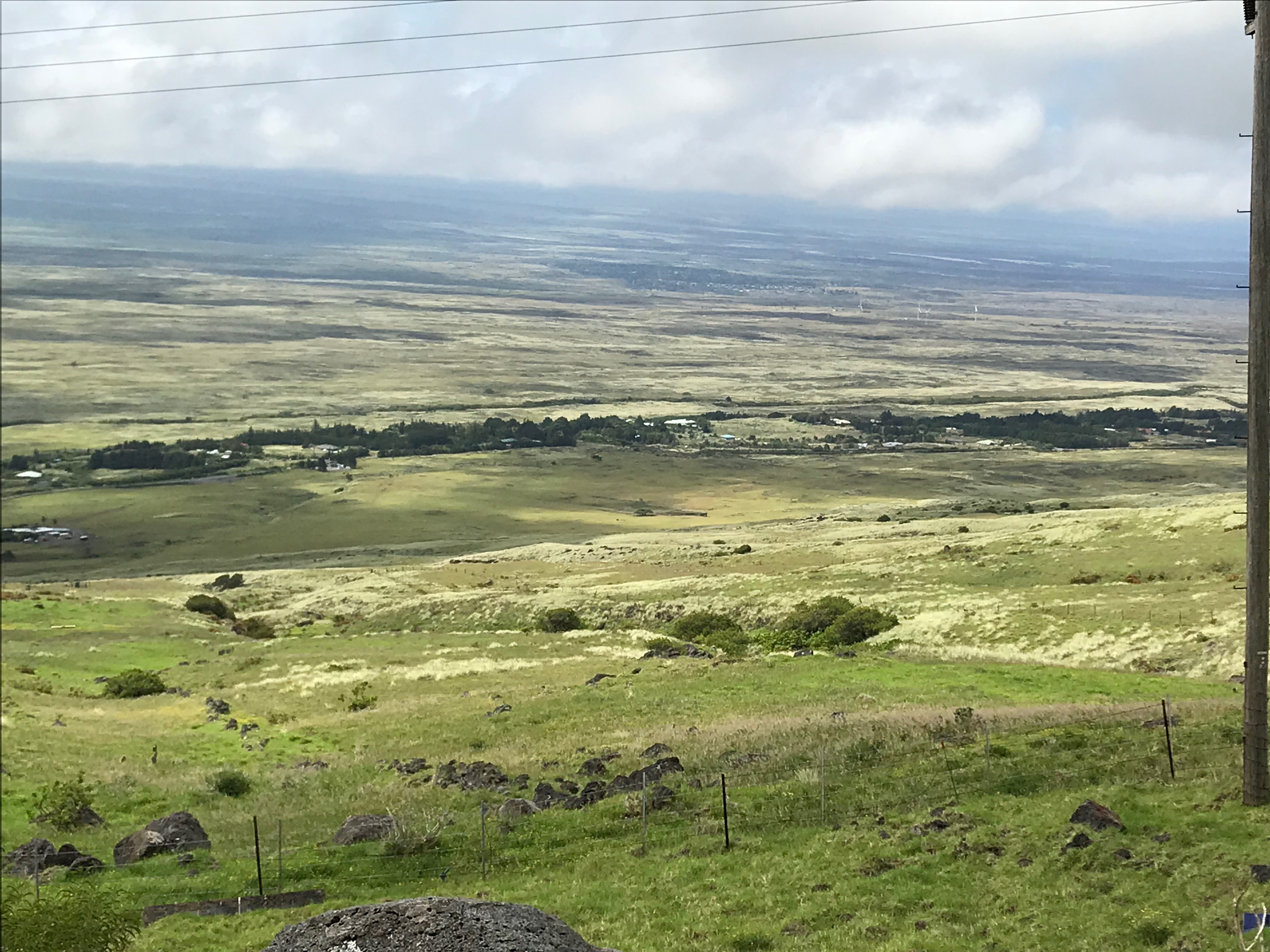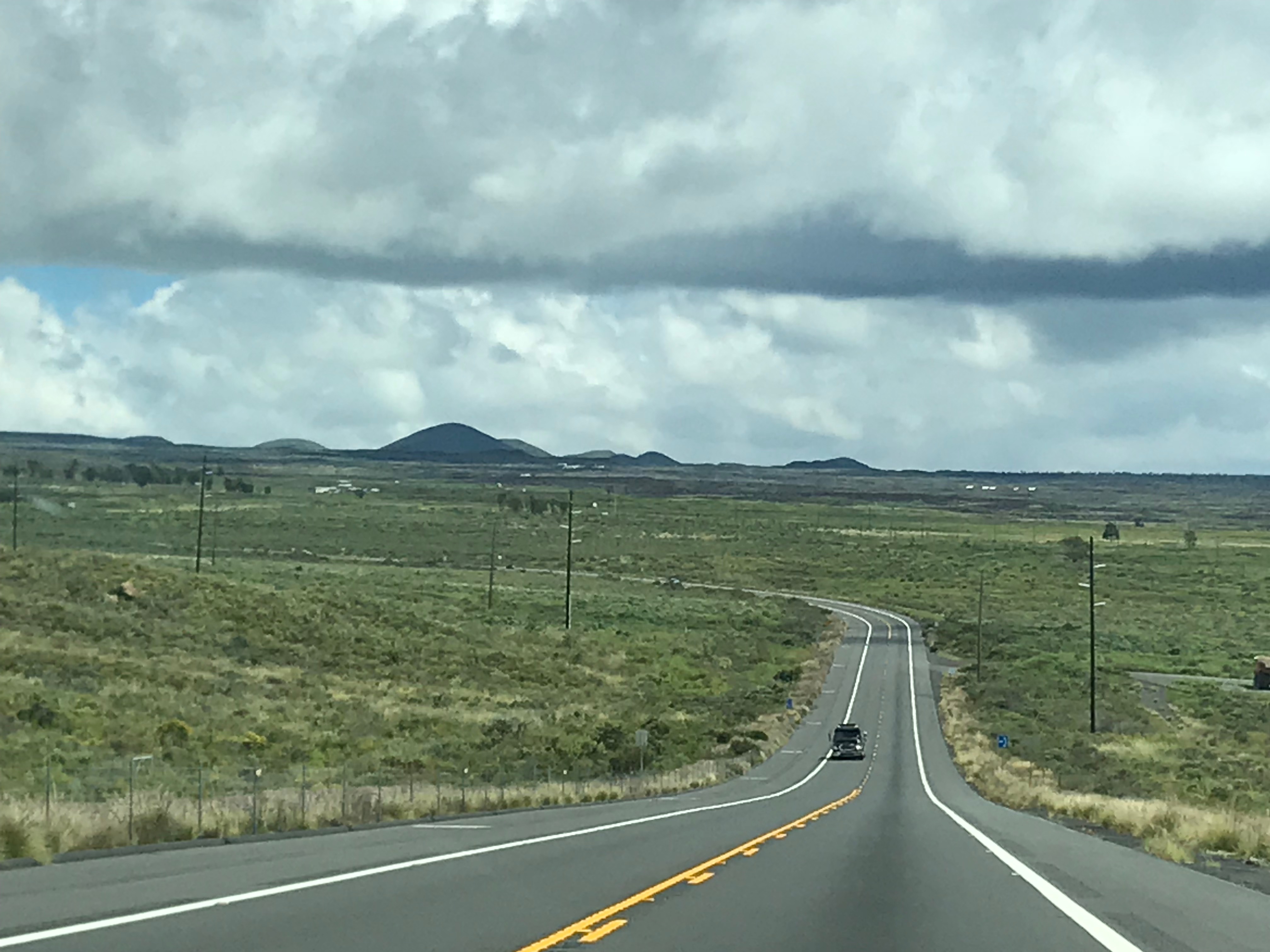 Enterprise picked us up pretty quickly and got us into our rental, then we were off to explore the south side of Hawaii. We started out heading across the middle of the island on the same road we drove yesterday. What a difference today…no clouds and great visibility. We could see the top of Mauna Kea, which is the tallest point in the state at 13,802 feet. They apparently get snow and can ski there in winter sometimes.