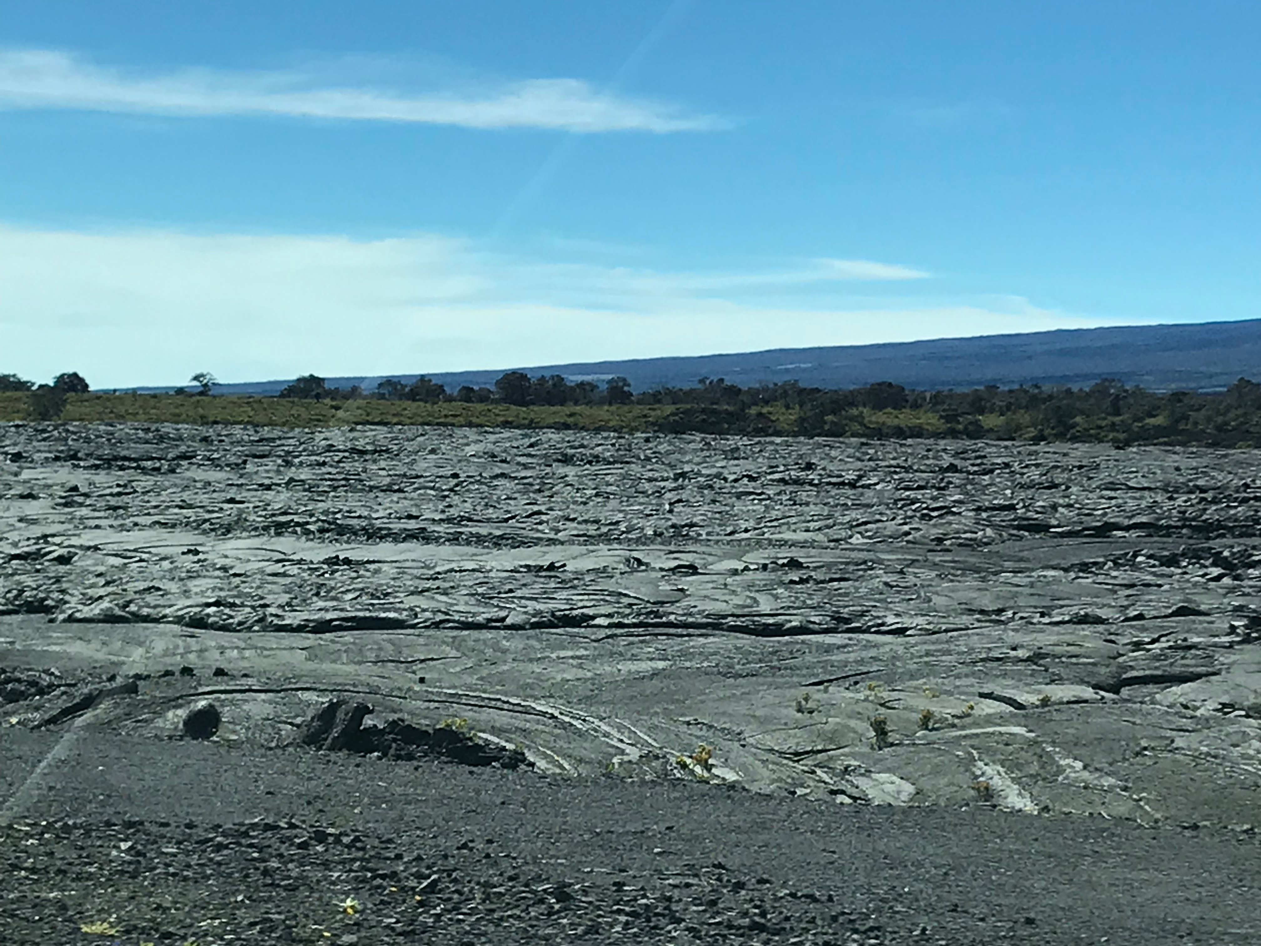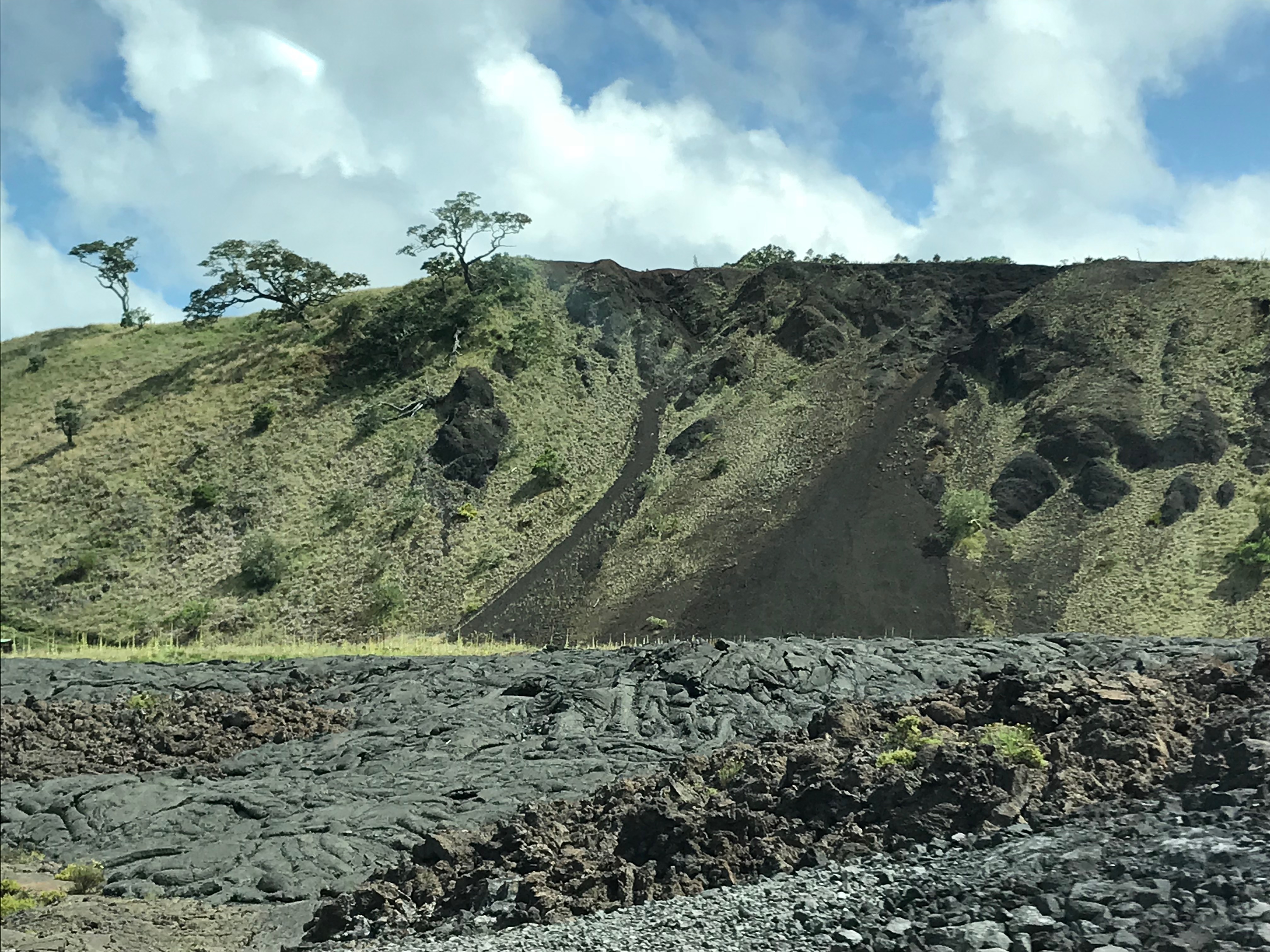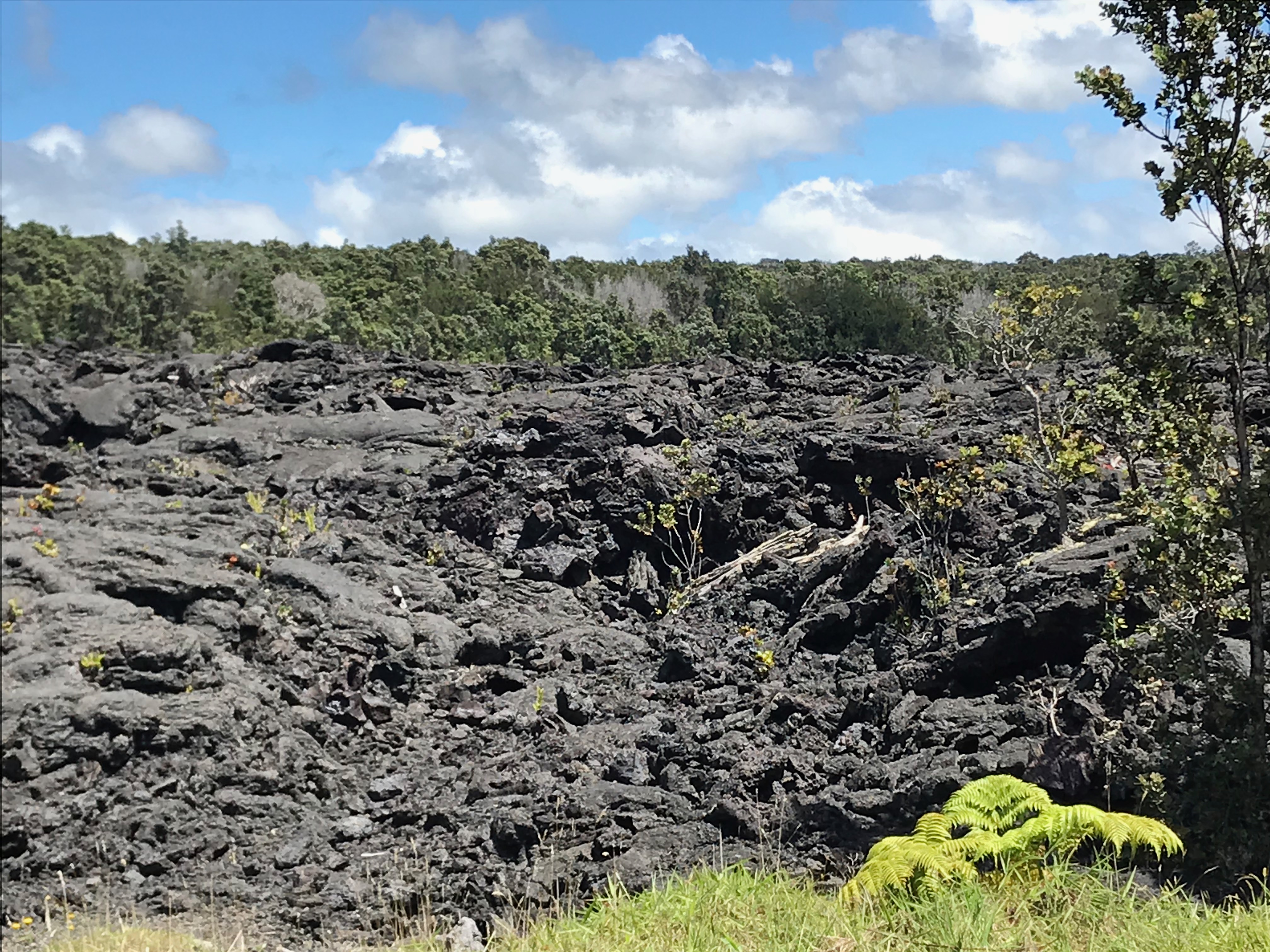 very cloudy in the mountain areas, and we couldn’t get a look at Mauna Kea and some of the other peaks. We did get to see a LOT of lava, though. It is really amazing. Some of the lava fields called Aa (ah ah) look like someone came through with giant bulldozers and broke it all up into rocks. It is supposedly very sharp, and will cut you up like knives if you
