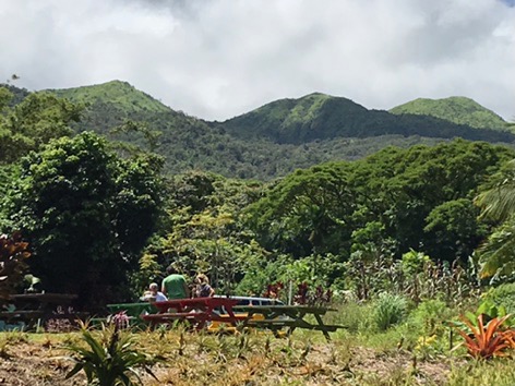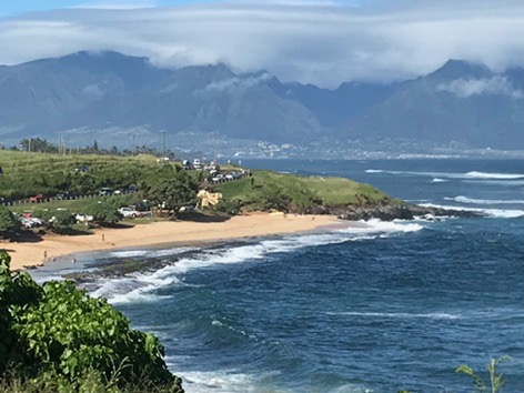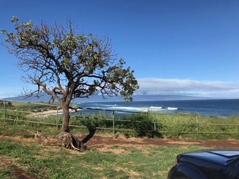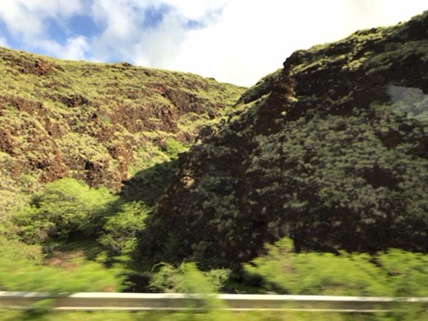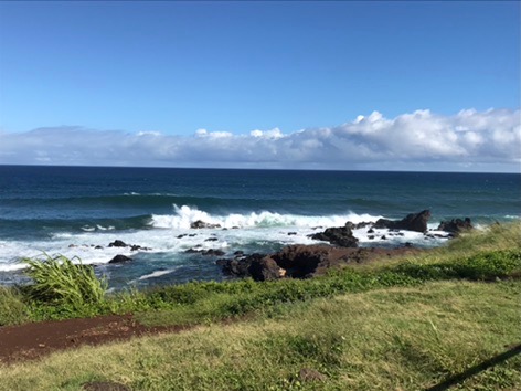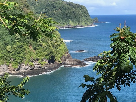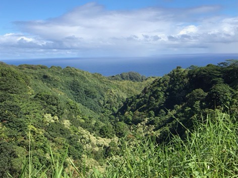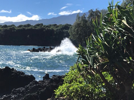 The trip to Hana runs along the coast through a rainforest with huge plants and dense trees. There were plenty of waterfalls and long-range ocean views. We stopped at many overlooks and parks along the way. Just before lunch we drove down to the Keanae Peninsula where the community and beaches were beautiful. On the way back up to the main road, we stopped at Auntie Sandy’s for banana bread, which was still warm and delicious. Then we stopped at another roadside market where I had some amazing lemongrass mint tea. (I will be figuring out how to make that later!)