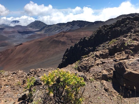 Our first stop was the lower Park Headquarters Visitor’s Center where we enjoyed fabulous views and looking at some of the native plants. The most interesting are the Silverswords. They come in green and silver varieties, can live up to 90 years, and bloom only once. Unfortunately, we didn’t see any in bloom, because it is supposed to be spectacular.