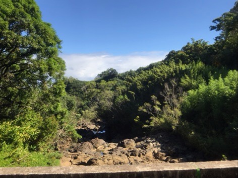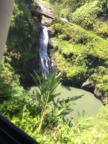 Today was another early start with a quick bite before meeting for the Road to Hana tour. Our bus driver’s name was Kimo, and he was a hoot! For the entire trip (about 9 hours), he talked about his family and their land past Hana, sounding like it was a large plantation. It turned out that grandma sold off the bulk of the land, and they have 2 acres left. He constantly said “for one” as in “sugar cane for one, and pineapple for two”. He also said the Hawaiian language has 13 alphabets (instead of letters). The entire day went like that, and all of the passengers were just cracking up.