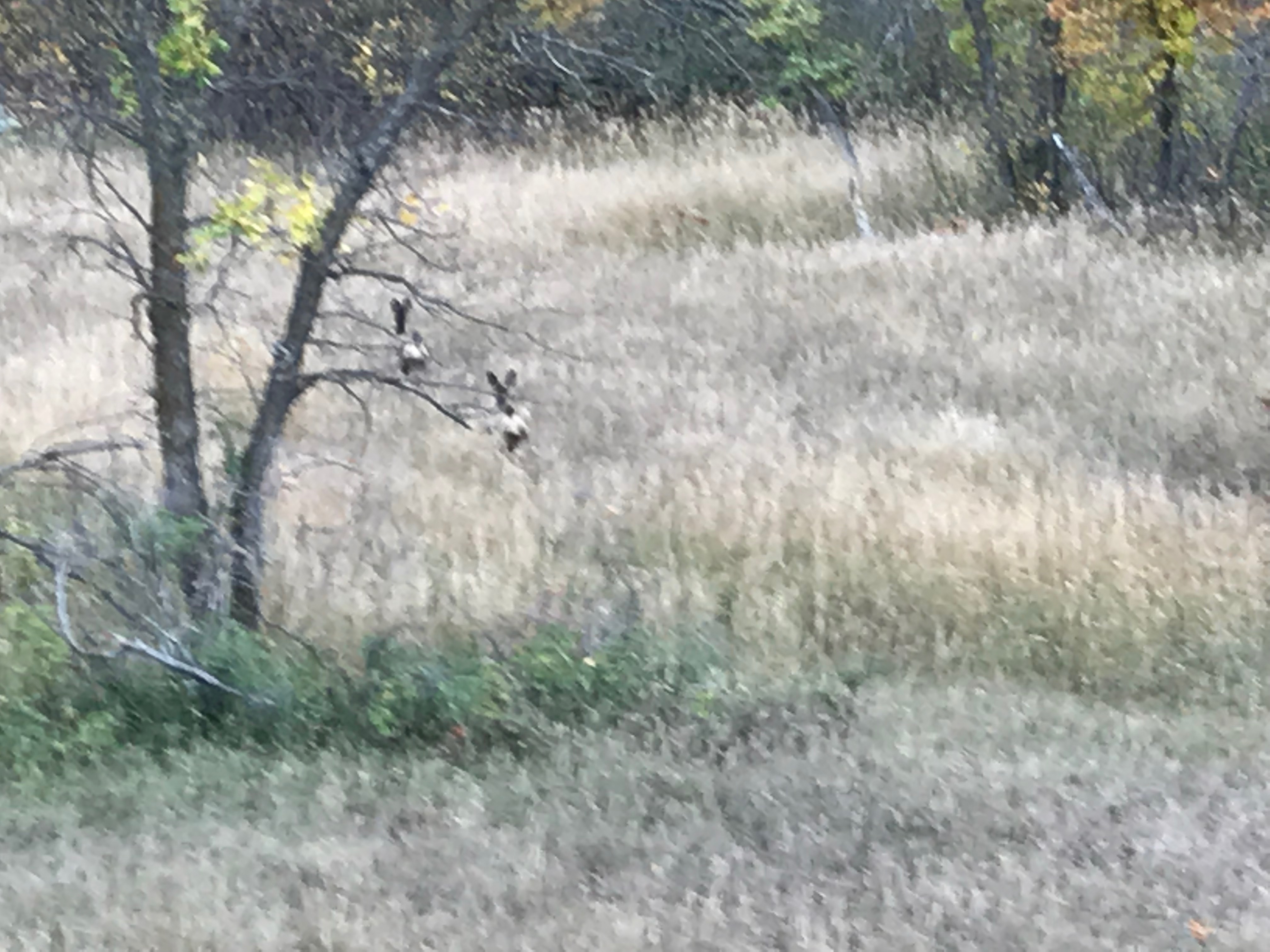 - Two deer running off.