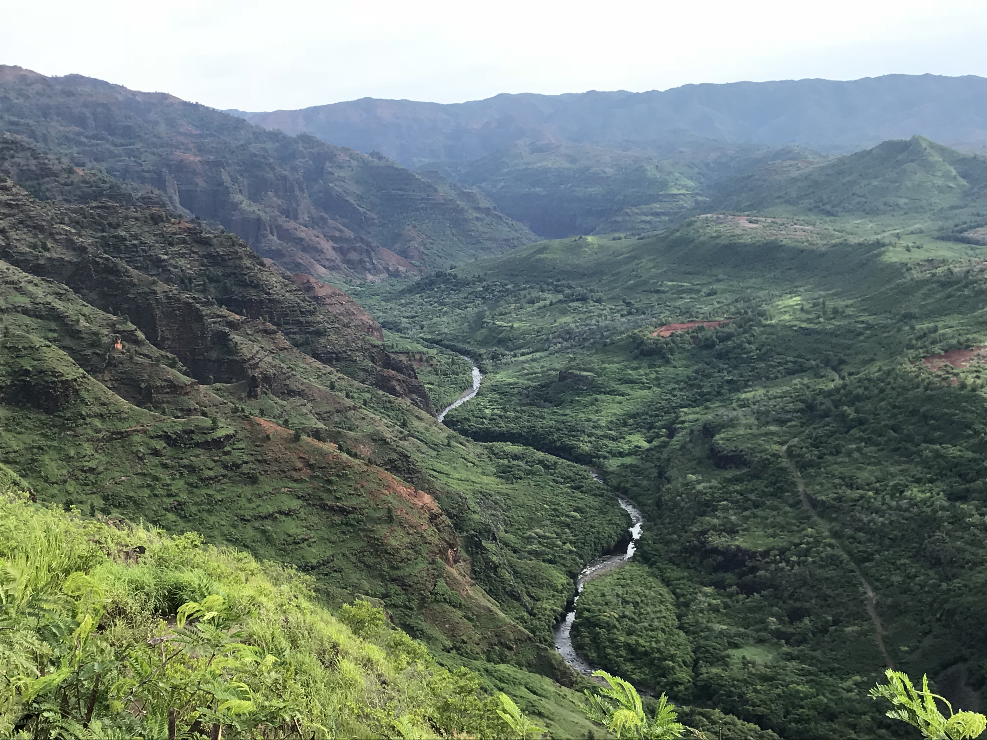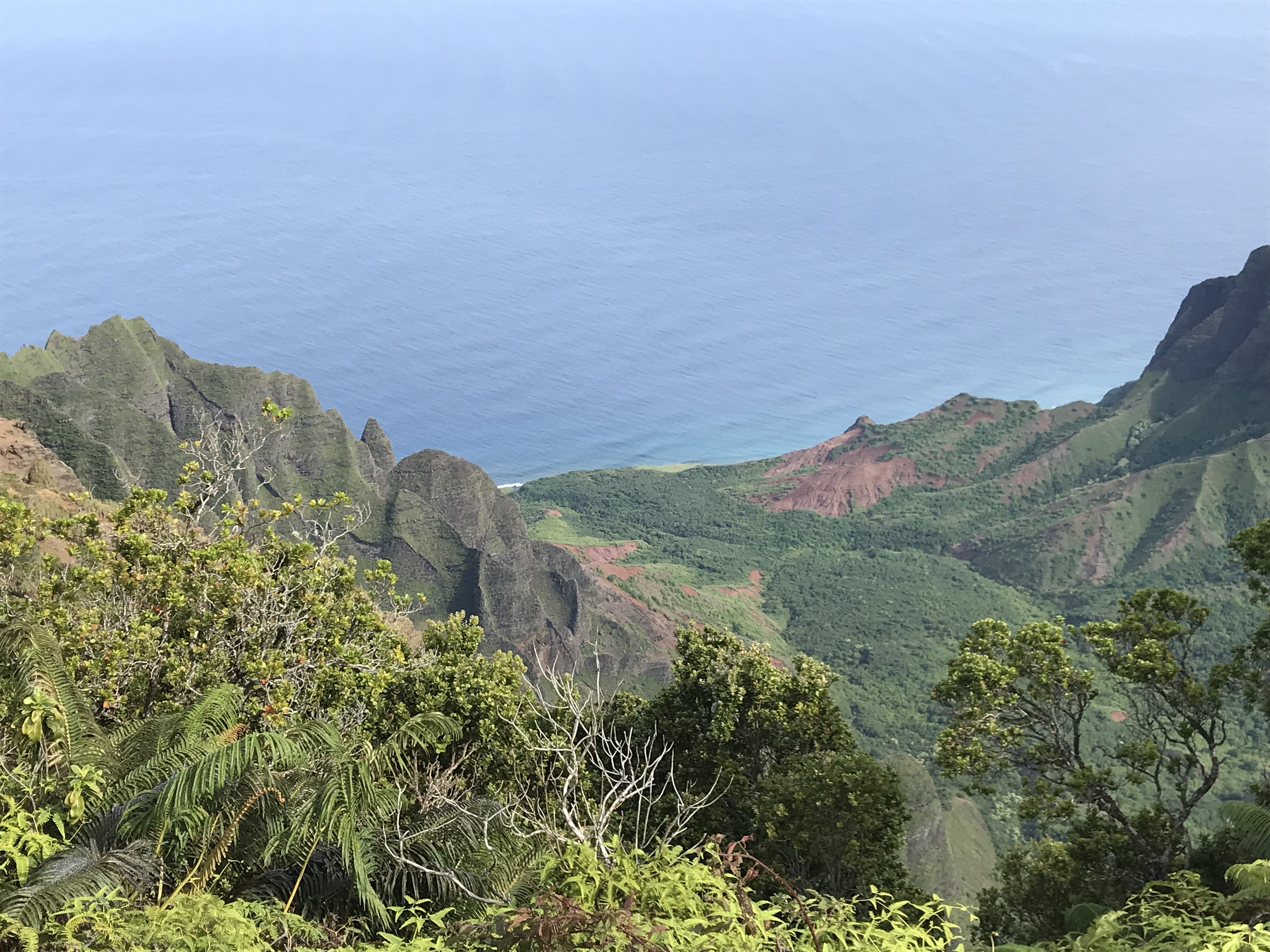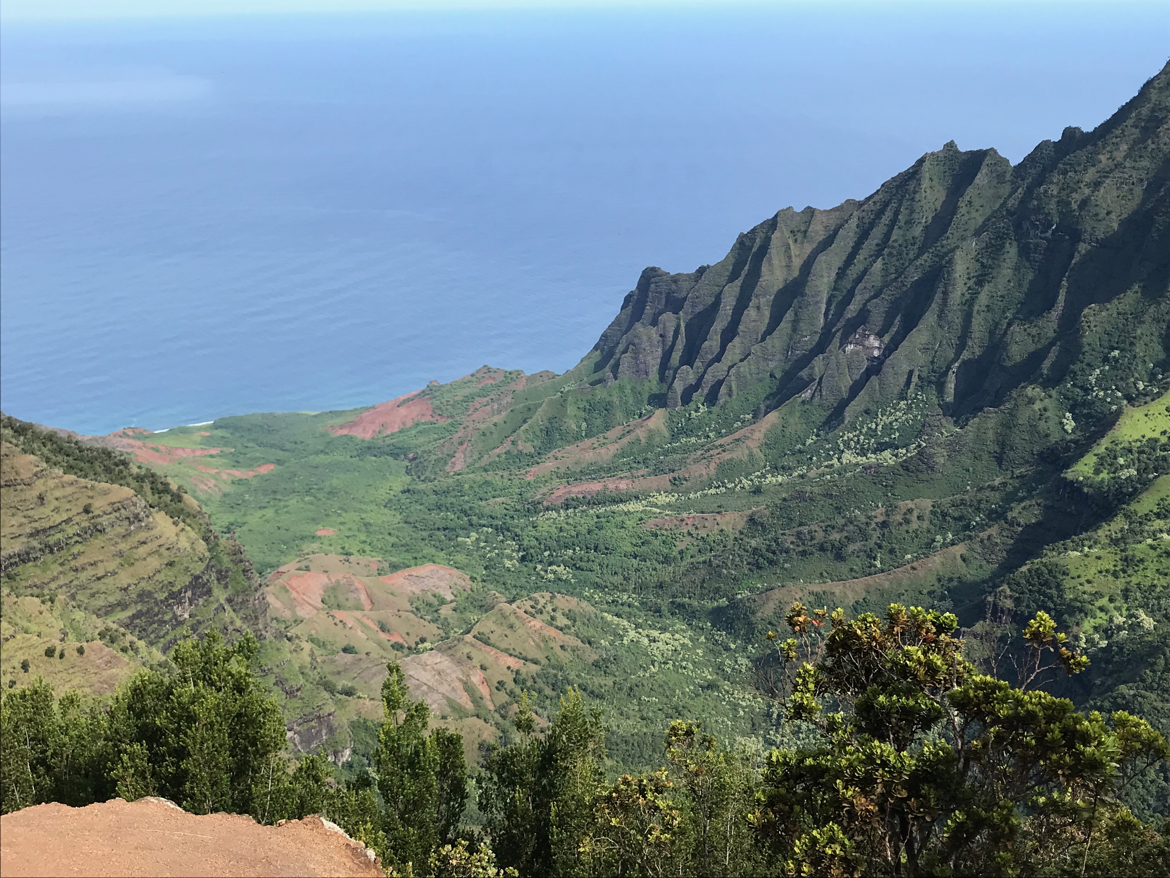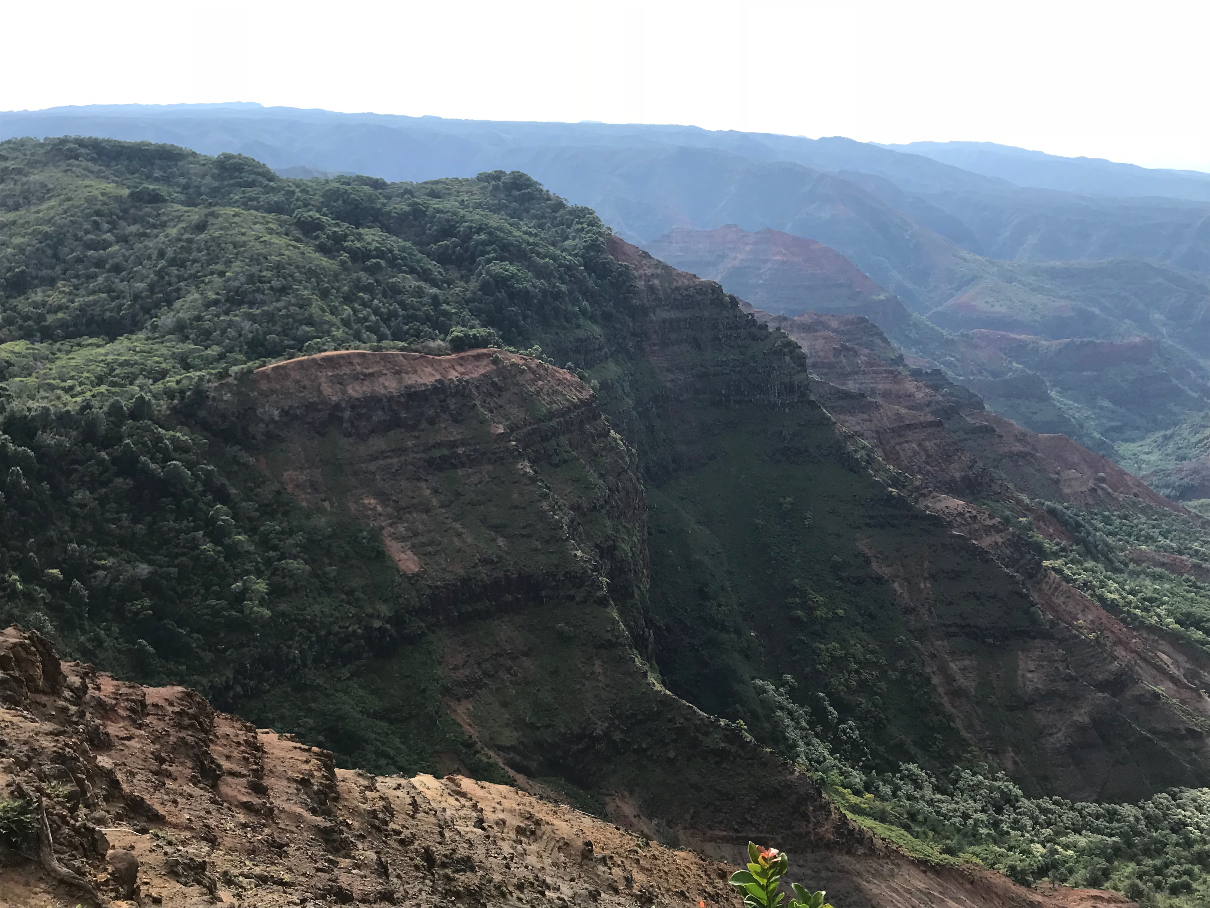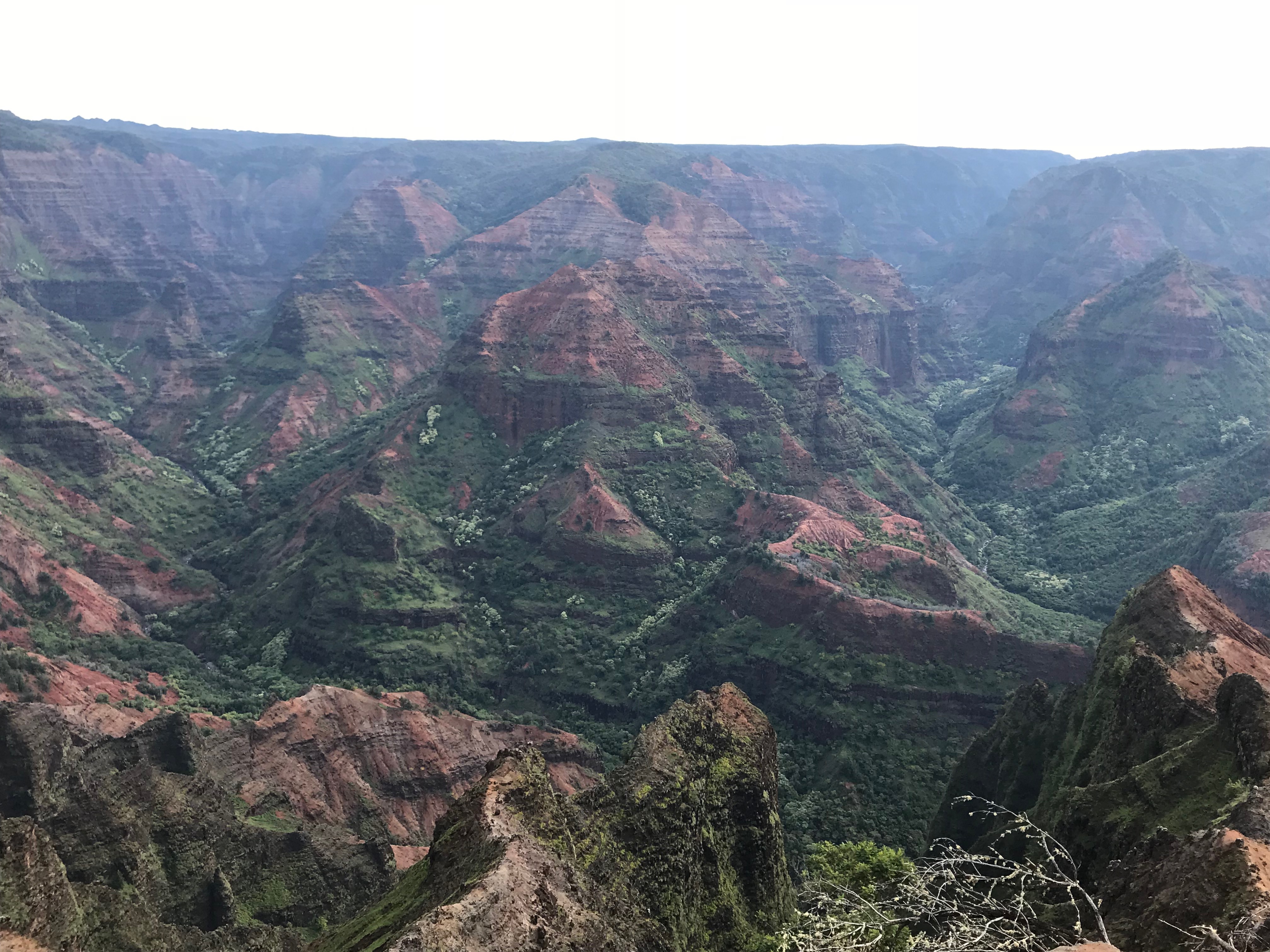 Finally on the road, we headed over to Waimea Canyon State Park and all the way up HI-550 to the highest overlook. The views were amazing, and the drop-offs were crazy. Those mountains are rugged!