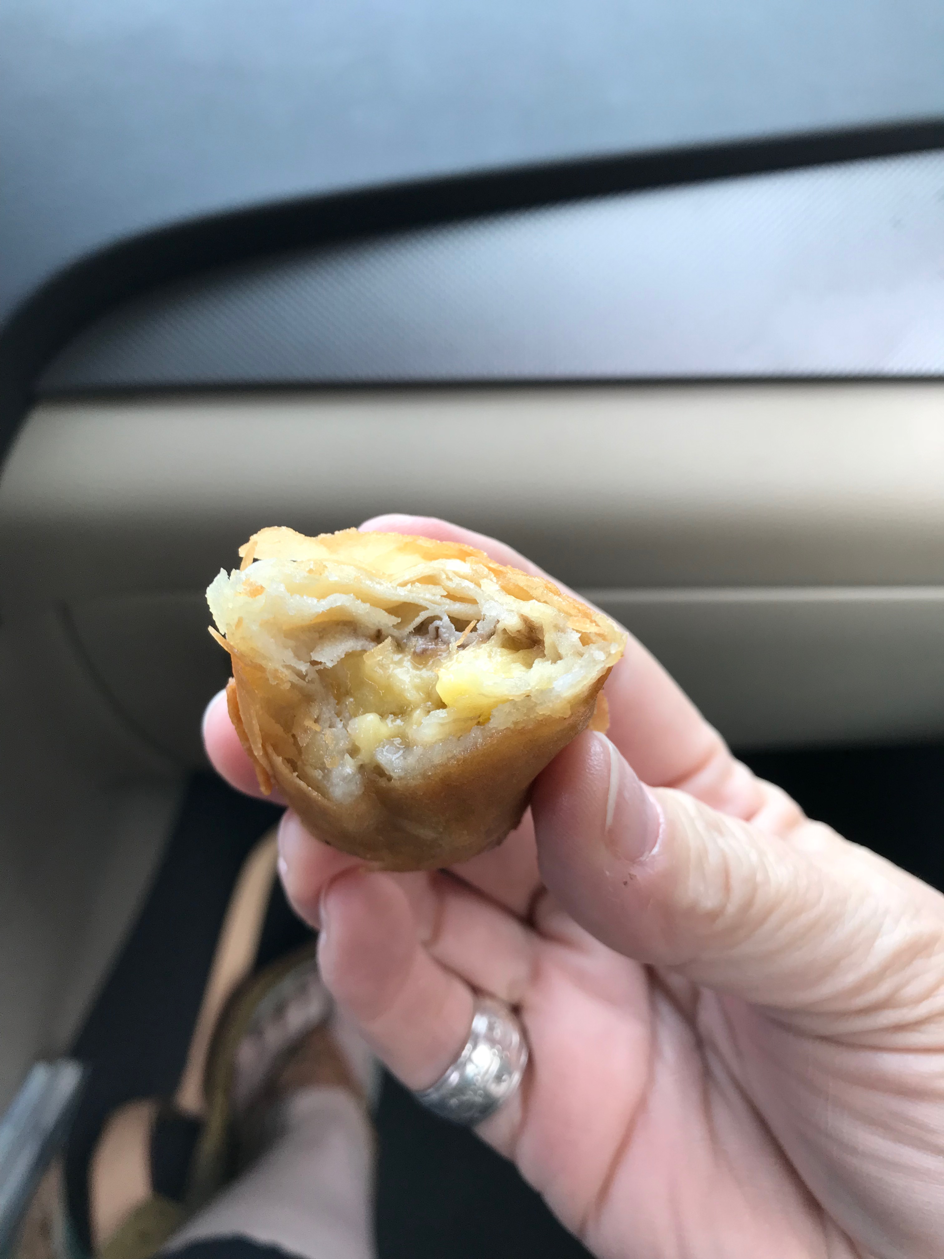- This delectable bite had fresh apples & bananas fried in phylo. Yum!